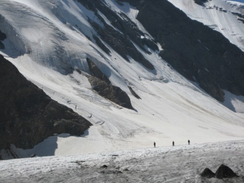 Накануне оттуда сняли новосибирца. Незарегистрировавшись в альплагере, он в одиночку решил подняться на г.Купол, немного плутанул в тропинках и попал под камнепад. Пока прочухались что его нет, пока спасатели его нашли - пролежал с травмой головы около 3-х дней. Вроде живой. Сняли - госпитализировали.