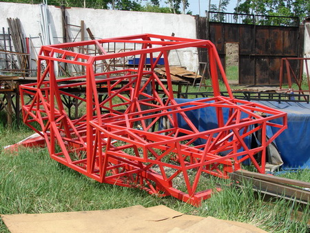 Это модернезированный Примус, так что концепция испытана и обкатана натурно, не одной клёпки обшивы не срезало, не один шов не лопнул, достигнуто тем что нагрузка распростроняется по фермам, дублируясь в разных плоскостях, схема сложней чем обычно применяют, но позволяет использовать профильную трубу, так как нормальной у нас не нашёл. Пока рама универсальна, каких либо кронштейнов под агрегаты нет, особенно если остановиться на мостовой. Находится в районе пересечения Попова с Власихинской ,т 89039102761 Олег.
