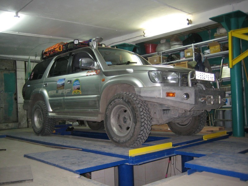 Силовой обвес, лебедка T-MAX 10000 с радиопультом, съемная калитка под вторую запаску и канистру, лифт подвески, экспедиционная корзина, верхний свет, шноркель, все сапуны выведены под капот, АКБ Варта-1000.