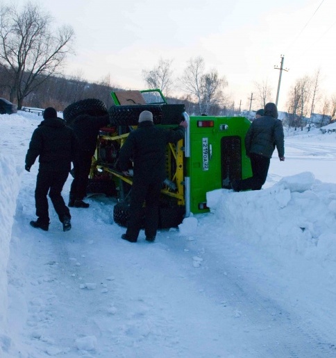 Полная жесть.Куча снега под левым колесом оказалась очень твердой и высокой-удар ,прыжок и на бок.и че он сломался? Редуктор Уаз 31512 под крестовину.