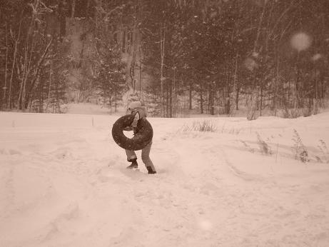 Если заменить колесо камерой, то можно на горку ее затащить, а вниз на ней как на санках! Только для большего интереса камера должна быть большой.