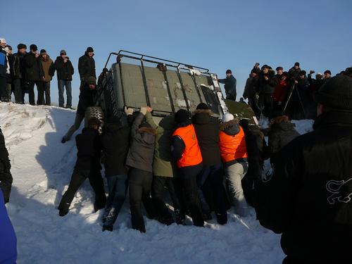 до того как поставили уазик на уши я думал что стою в самом интересном месте, делика и хонда прямо удивили не досмотрел кто победил но за зрелище безбашенного стремления к финишу большое спасибо:P прям как на себя со стороны глянул:evil: соскучились люди по простым удовольствиям, летели все ,просто некоторые аккуратно и низенько:) кстати так и не посмотрел че там было у пузотерок:sick: мне понравилось(у джиперов),подходят,смотрят как проходят трассу соперники, обсуждают,так здесь вот надо аккуратненько,здесь помедленнее-сел за руль тапку в пол ПОНЕСЛАСЬ!!! душа в рай,прилетел на финиш (кто доехал:P ),припарковался,пошел дальше смотреть и опять здесь надо тише там помедленнее прикольно слушать:P общее впечатление мероприятия-нужное дело сделано, хороший финал сезона.